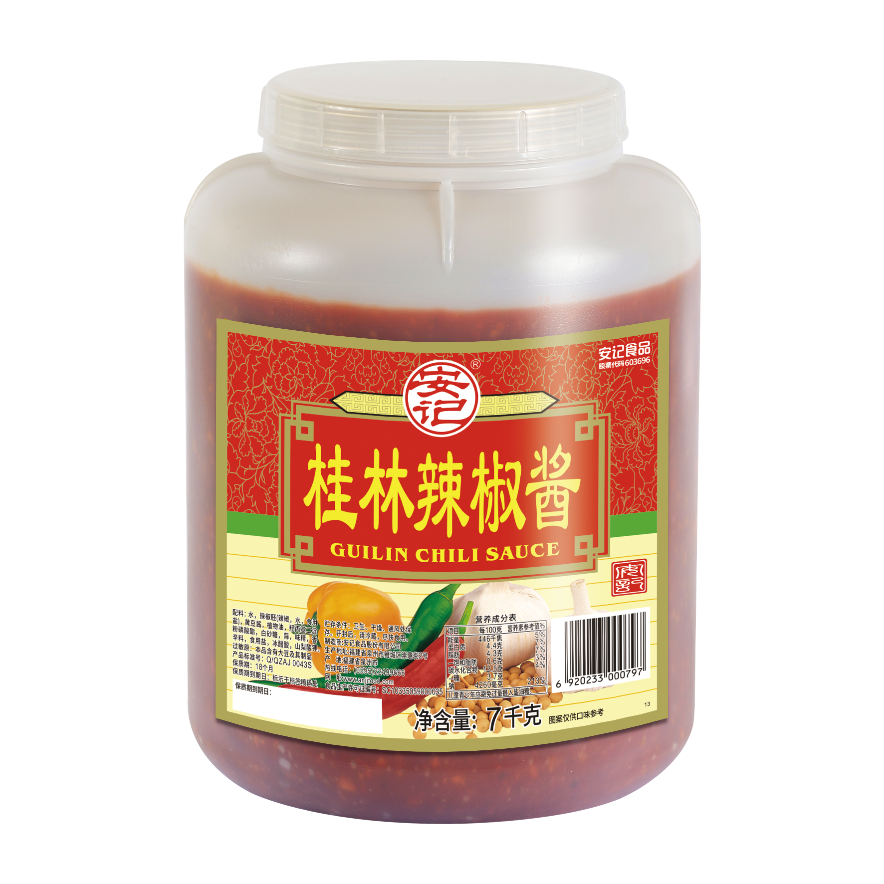 (桶裝)7000g安記桂林辣椒醬2桶裝